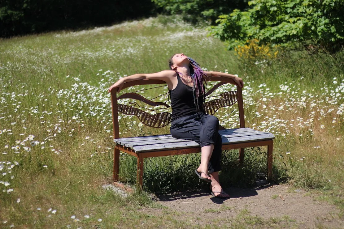 The photo above was from a few months ago in a park on Salt Spring Island. I was on a walk with my Love. I’m now 6 months pregnant so have more of a belly now. But I feel inspired to share this photo because I love how it captures the feeling of Surrender, which flows through a lot in my songs…