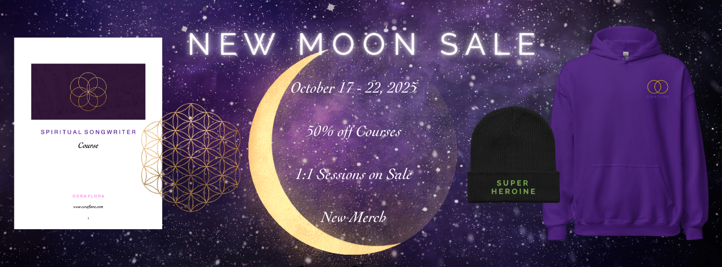 But first… I’d like to tell you about this New Moon Sale. New moons are great times for endings and beginnings… I’m feeling inspired to give my GoFundMe one more shot to fundraise for the mastering of this EP, and give you an opportunity to receive my online courses at 50% off, 1:1 sessions at for $222, and new merch inspired by songs to inspire You!!! Prices will go up October 22 at 11:59pm Pacific, so if you’ve been feeling called to any of these offerings, now is the time to invest. It would be super helpful!!